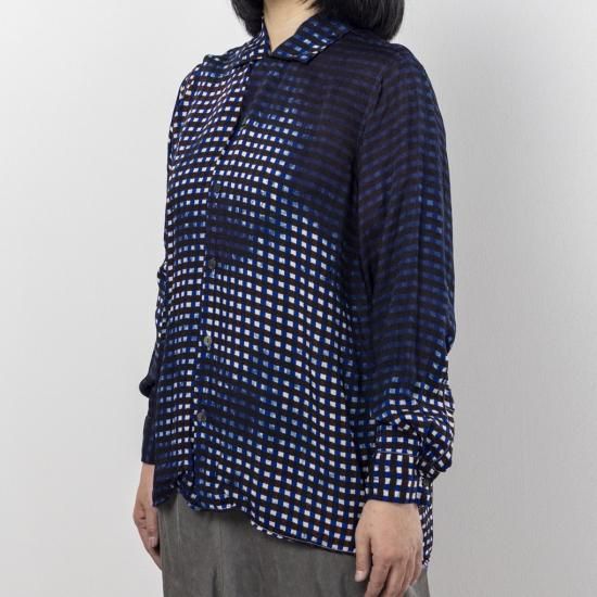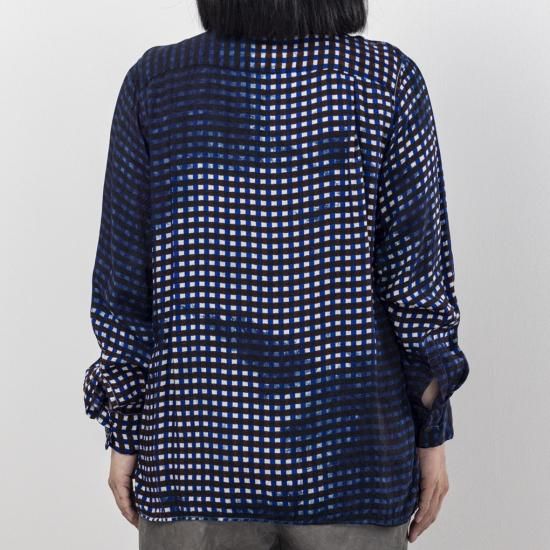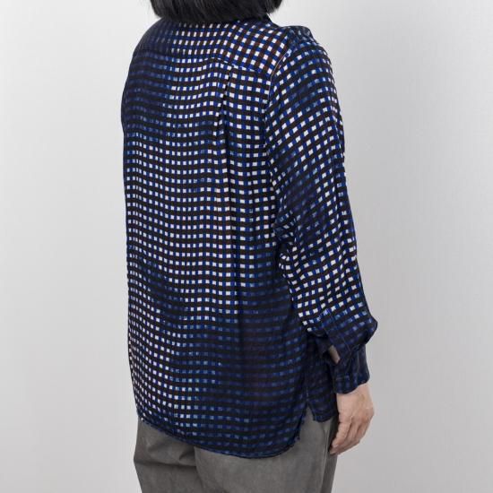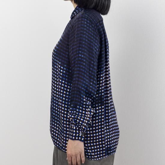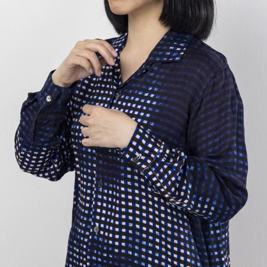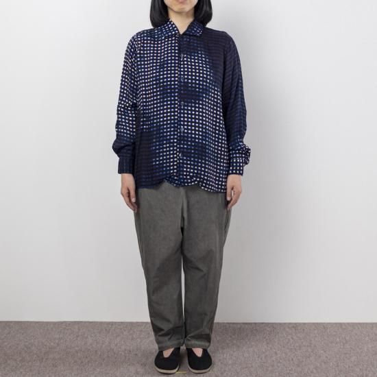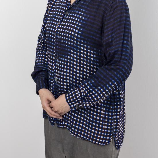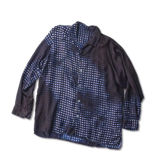 キュプラチェックオープンカラーシャツ 藍ムラ染