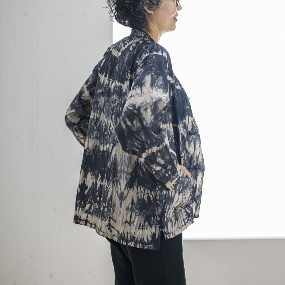 ナイロン素材に濃淡のブラックでさざ波をイメージした絞り染めのデザインです。