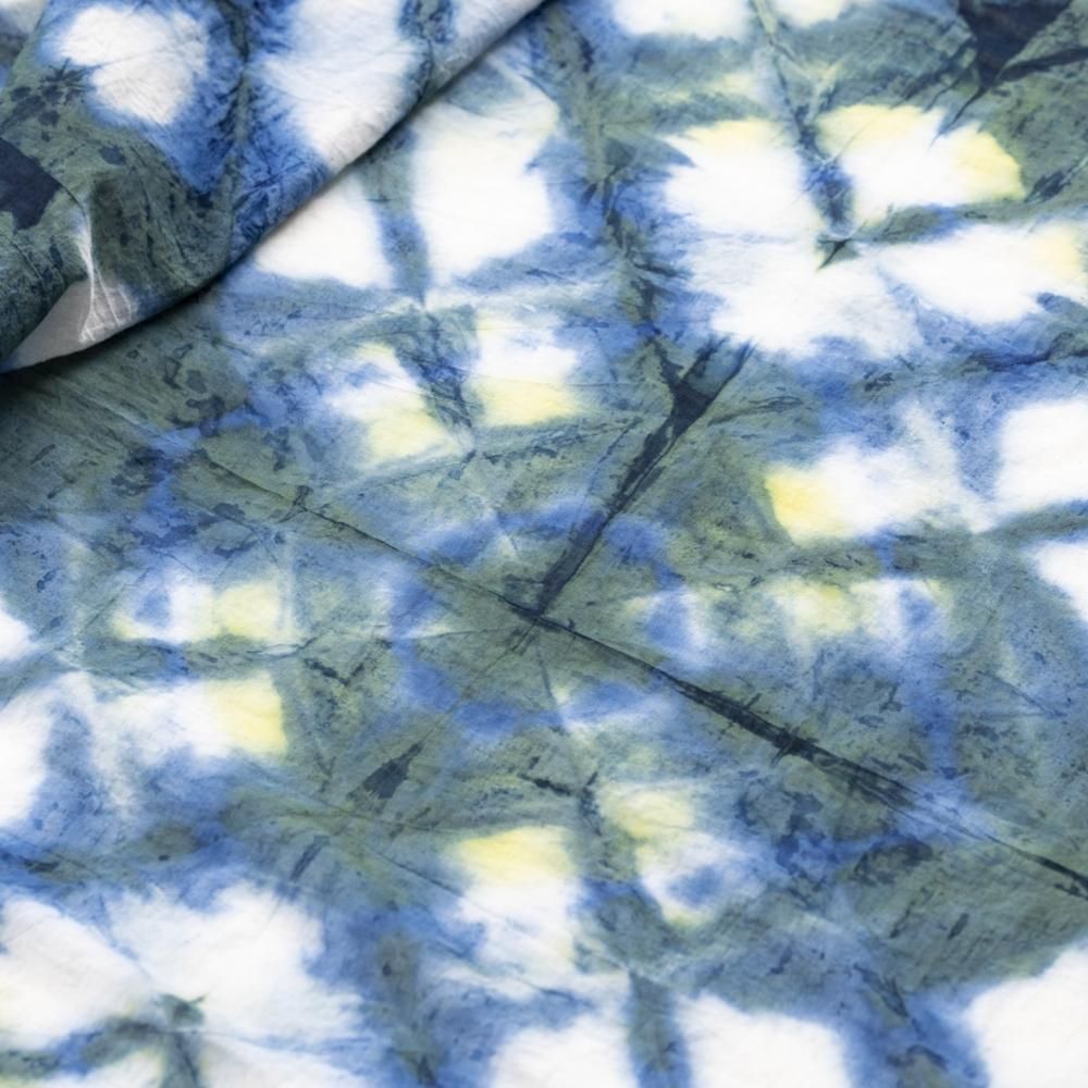 The blurry cell-like patterns are shaped with hands during the dyeing process