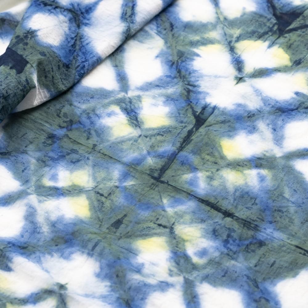 The blurry cell-like patterns are shaped with hands during the dyeing process