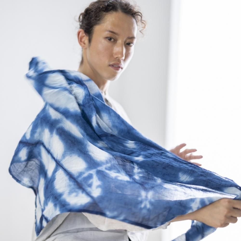 ガーゼショールハーフ Dragon fly(INDIGO、INDIGO*YELLOW)