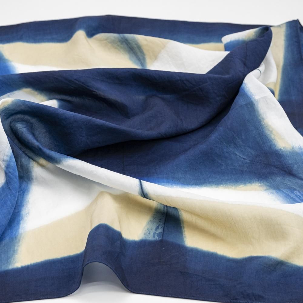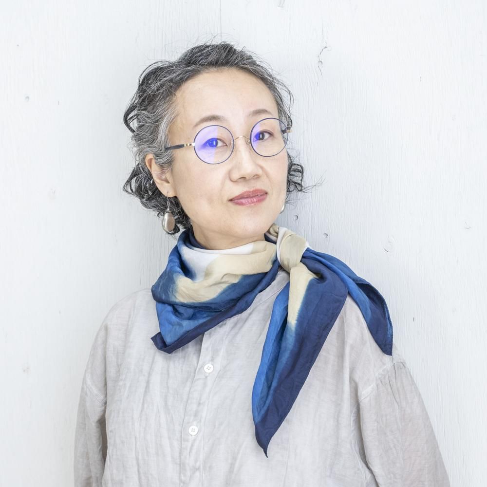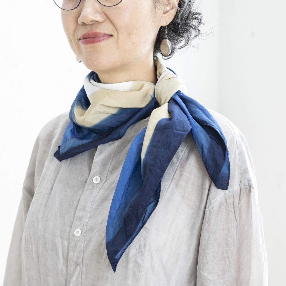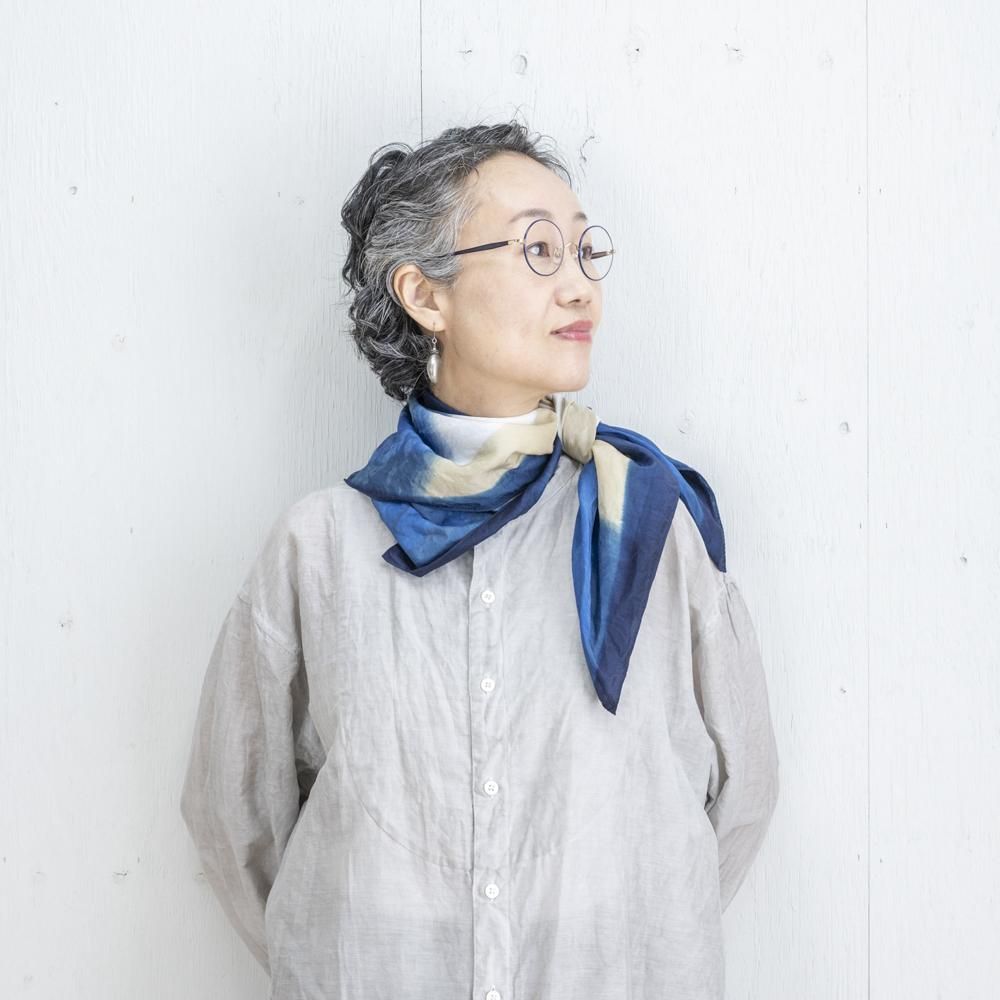 天然染料ならではの柔らかく鮮やかな藍色は、日々のコーディネートの差し色としても、お顔周りをぱっと明るく映すアイテムとしても大活躍してくれます。